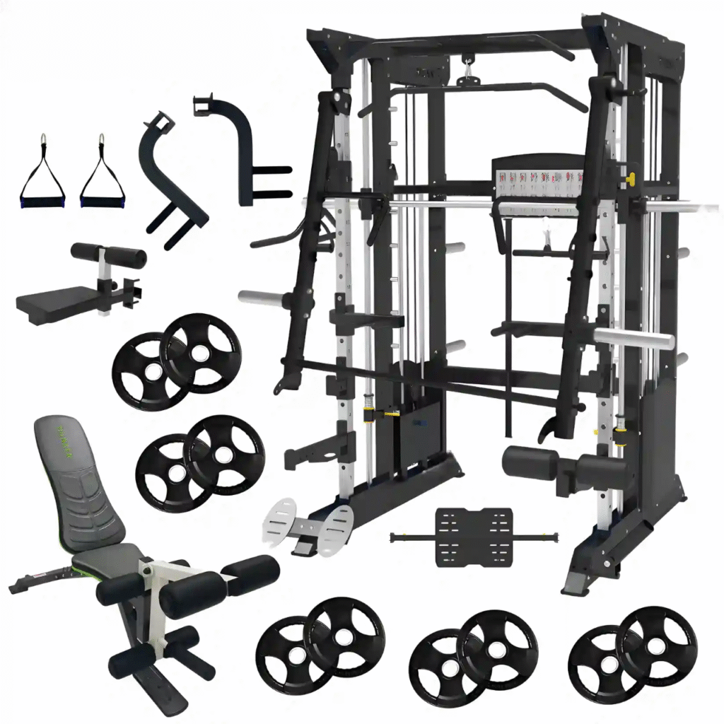 Smith machine with integrated weight + accesories, we have a variety of packages